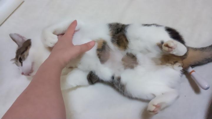エコー検査で剃られたお腹も、ちょっこし生えかけ~~