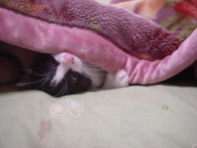 ゆずは、私のベッドに潜って遊ぶのが好きみたいです。