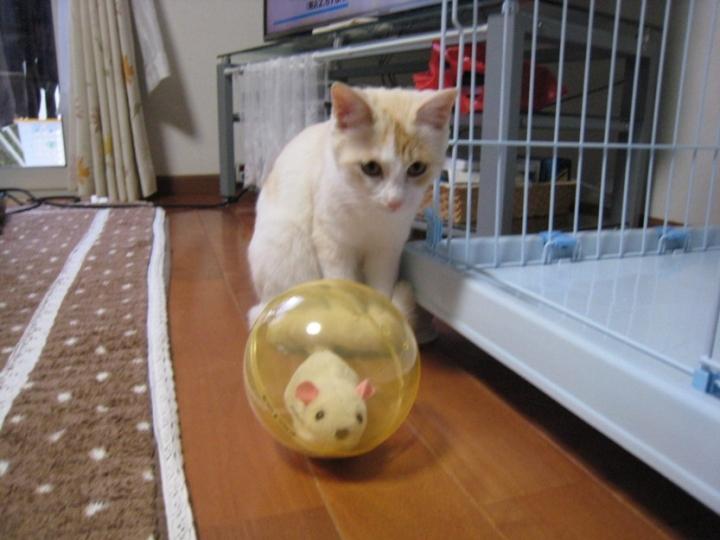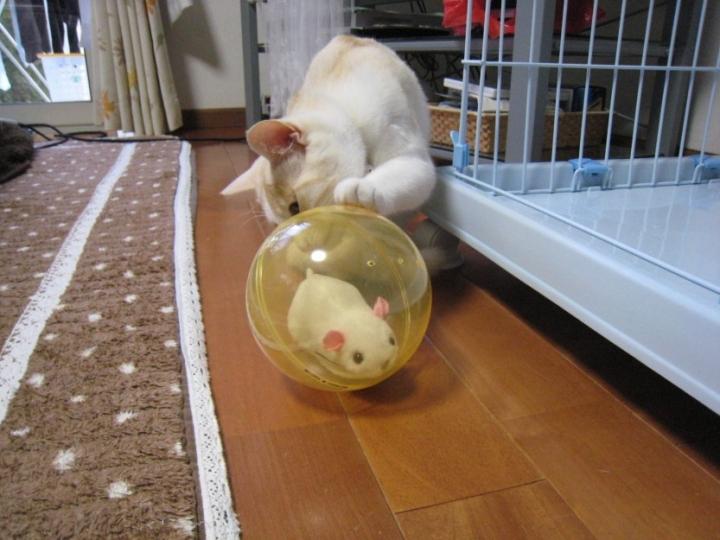 ボールの中にネズミが入っていて電池で動き回る物です。