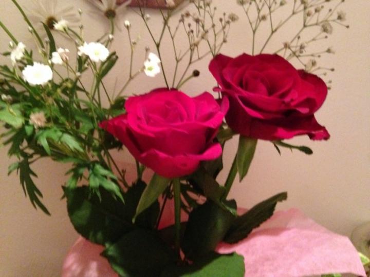 昨日はわざわざ紅い薔薇を買ってきて玄関に活けました