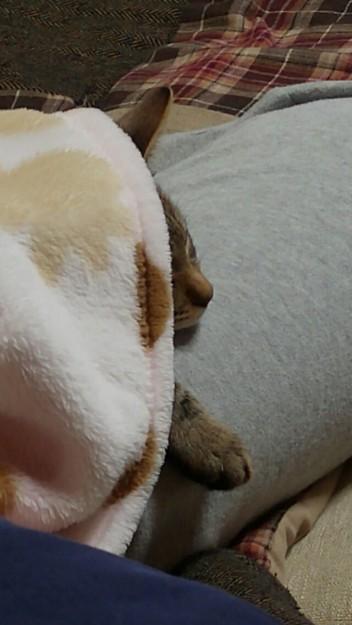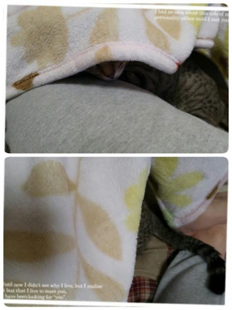 りんがいてもお構いなしに熟睡するお姉ちゃんの寝かたに合わせて、りんも移動してました(ToT)