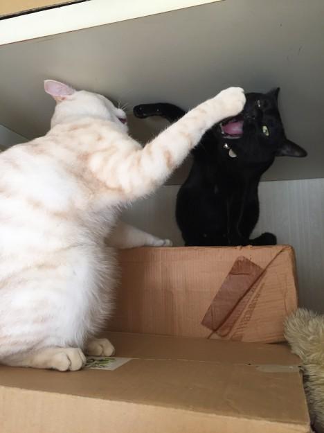 お雛様を出そうとすると箱の上で小競り合い;^_^A