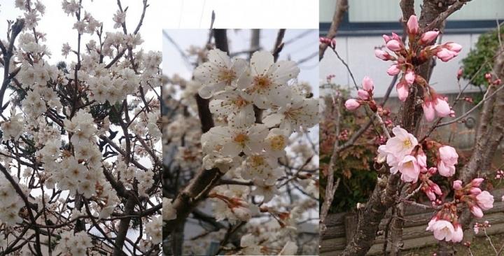 咲きはじめ、少しピンクの濃い桜は、山形特産の啓翁桜です。