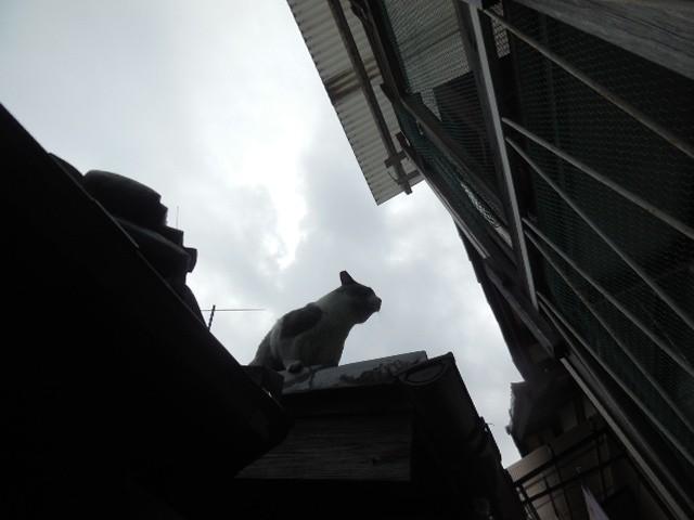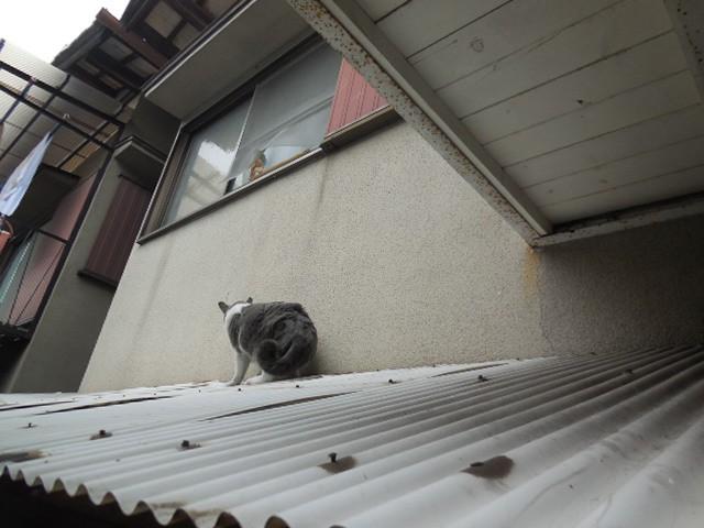 昼になって、あまりに変で見るとテツが隣の屋根へ