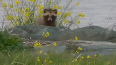 河原に棲みついているタヌキの家族(5匹)とは仲良しなのです。
