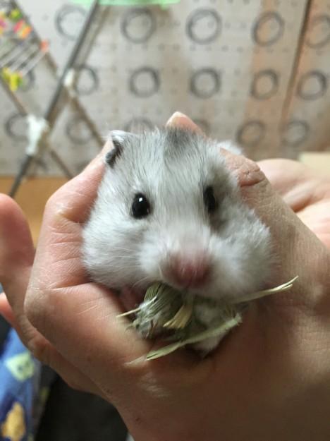 お口の中には入りきらない、敷草と布団代わりの綿がパンパン!