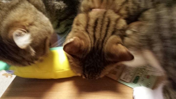 それにしても、我が家は蹴りぐるみひとつ取っても三者(三猫)三様だわ😃💦