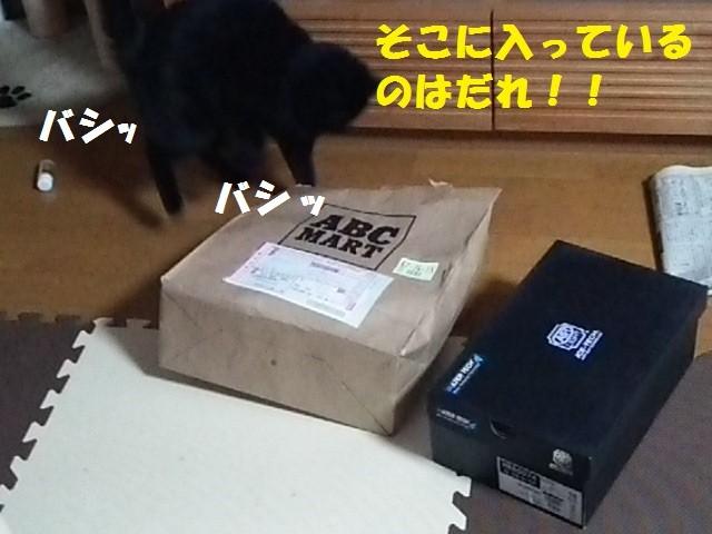 紙袋を必死でバシバシ叩く黒娘、らんちゃん