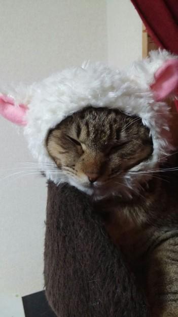 うには似合わず&眠いのか興味なし(エリザベスカラーの時も気にしてなかったので反応は薄いと思ってましたが)