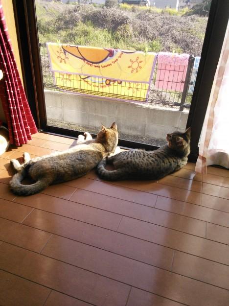 うちの猫ちゃんたちは暖かくなって最近は床にごろんが大好き(*^_^*)