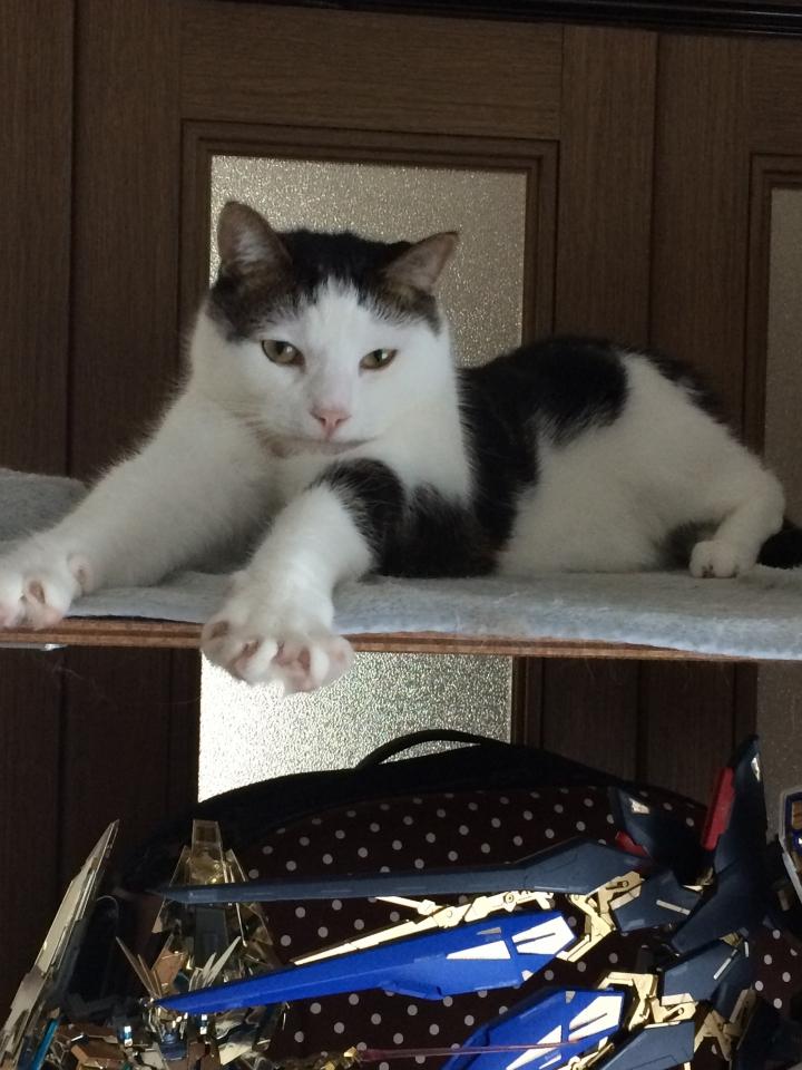 寝てたのを起こしちゃったので、不機嫌な顔が撮れました。