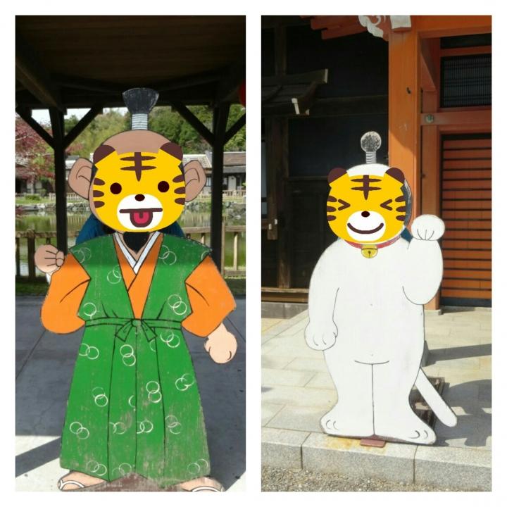 武士と、白いのは「ニャンまげ」というここのキャラクターです。