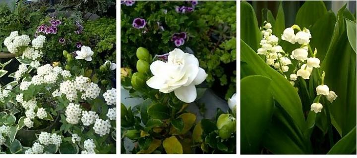 今咲いているのは、コデマリ・八重くちなし・すずらん