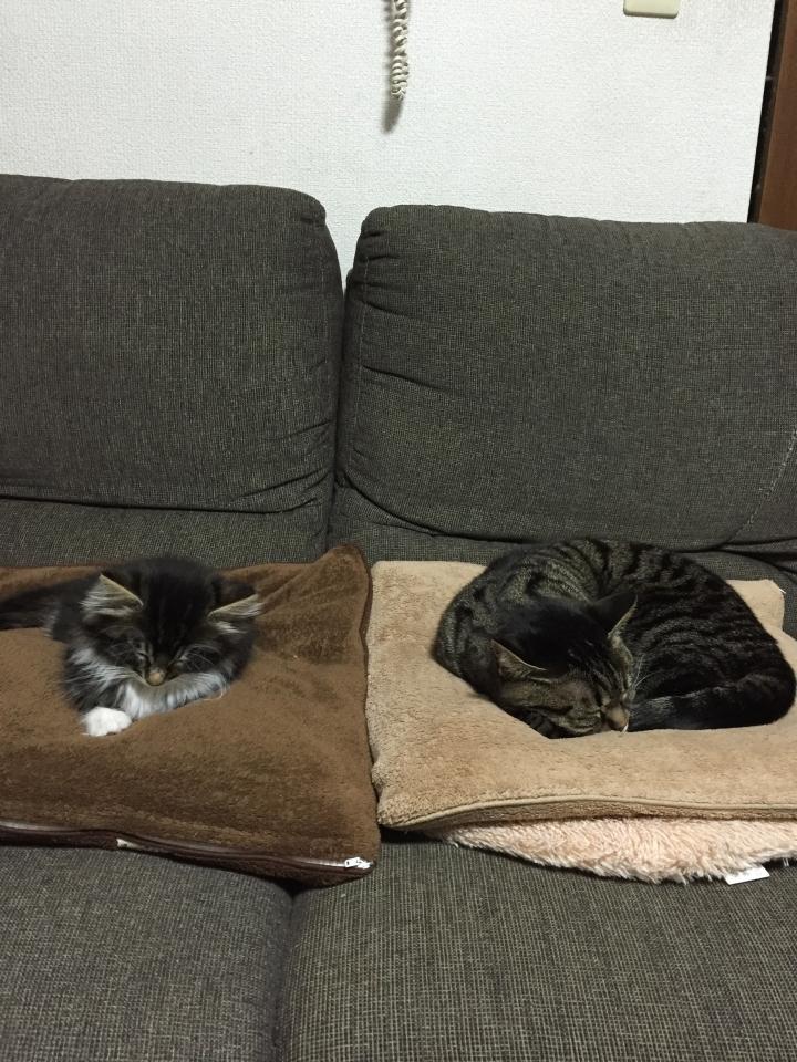 起きると子猫のムサシ追いかけ回して大変‥