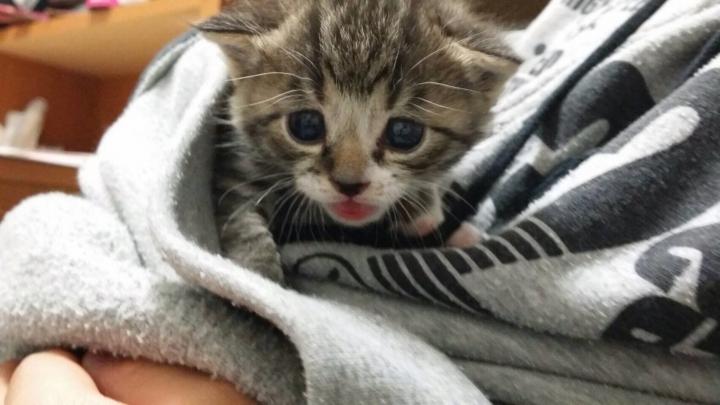 まだ乾いた臍の緒が付いた状態で、本当に小さな子猫でした。お預かり頂いて居るNPOの方のお陰で、元気に育ってます。