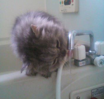 この後、シャワーの存在に気づき、わざわざ浴槽の縁に上がらなくてもよいと学習した後は、風呂椅子に座り、シャワーを口元に持って来いと言うようになりました。