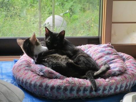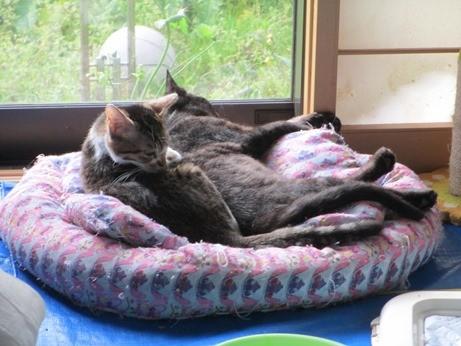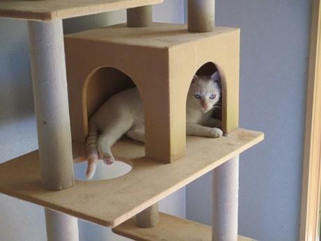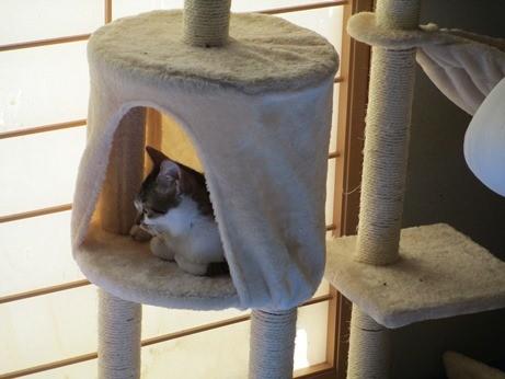 我が家で預かっている猫たちキャットタワーでそれぞれくつろいでいます。