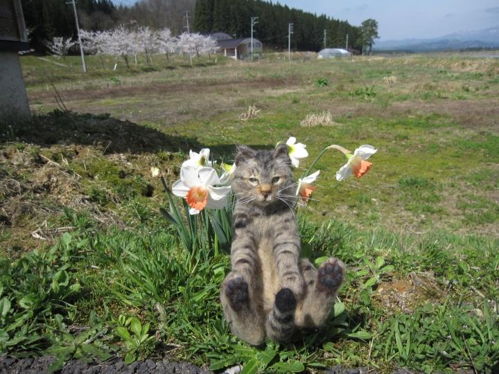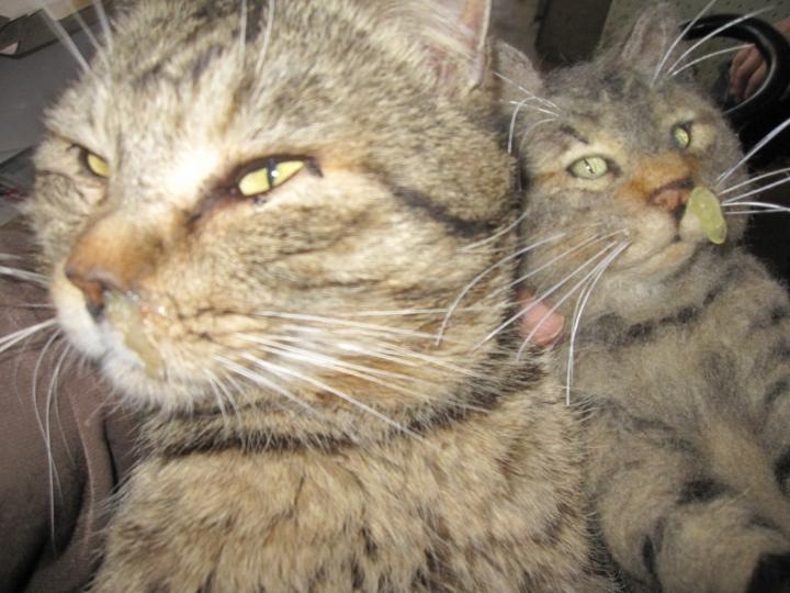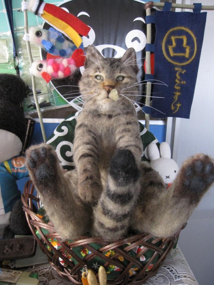 いつもおニャン形を作るときは、その子らしいポーズを考えるのですが、こいつはこの強烈な顔しか特徴がなく、どんな姿にしょうかなと思案していました。