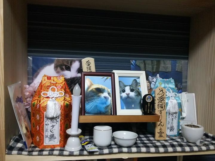 2ヶ月前の同じ日に旅立ったずりの仏壇に加わりました。