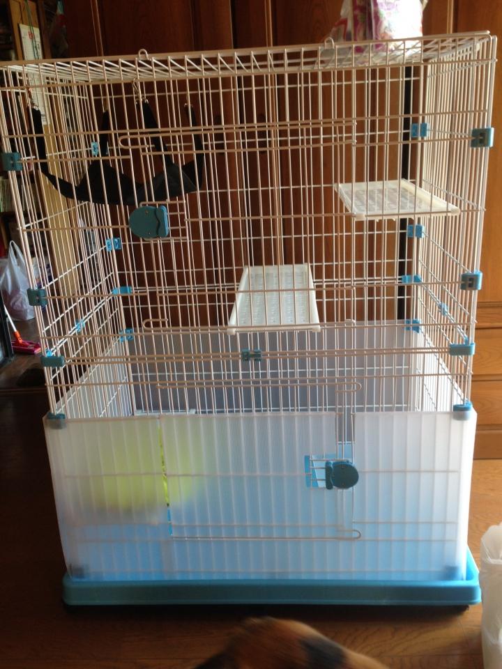 キャリーから出してゲージに移すと、元気に鳴きながら歩き回りました。