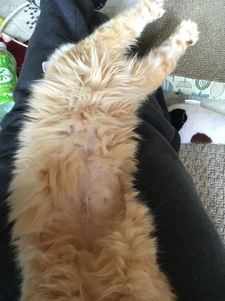 先日避妊手術を終えて抜糸したお腹はこんな感じで、少し毛も生えてきて傷もきれいになってきました。