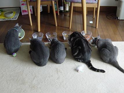 家猫達は5匹そろってお昼ごはん中だし(笑