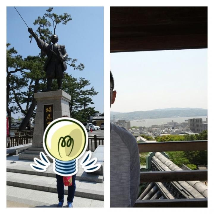 ダンナさんは天守閣で宍道湖をバックに♪