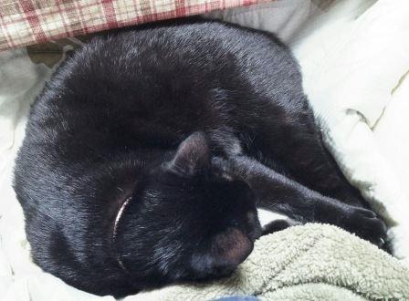 膝だけでなく、いつもは私は昼寝してたら、寄ってこないのに、今日はお腹の上で一緒に御昼寝。