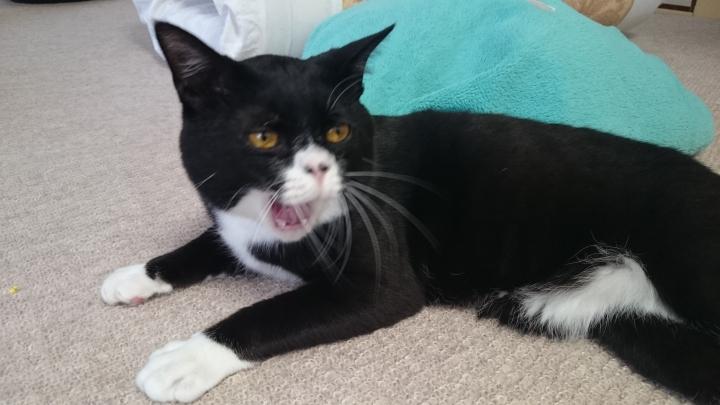 楽しく噛んでますね(笑)噛んだ段ボールは、どこに?次の瞬間、飛ばしてますね😱