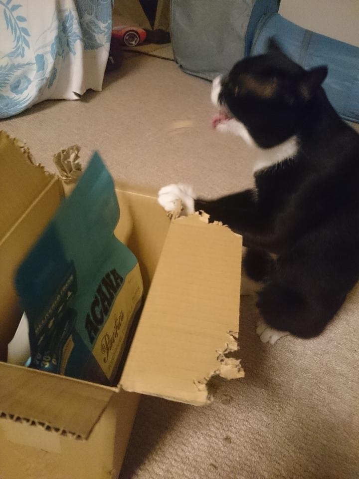 ポコ太君が大好きなアカナが届いた時、どうやって噛みちぎっているんだろう⁉と思い観察してました。