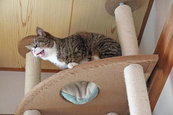 ↑本当は、キャットタワーに登ったはいいが、自分で降りられなくなって助けを呼ぶつくし。