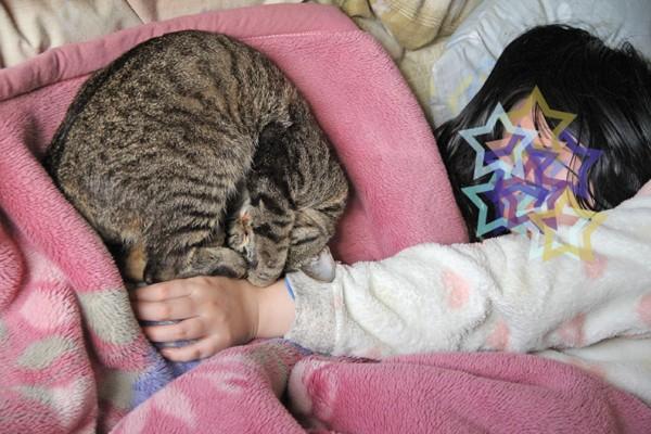 わらびが一緒に寝てくれることは少ないので幸せ♪