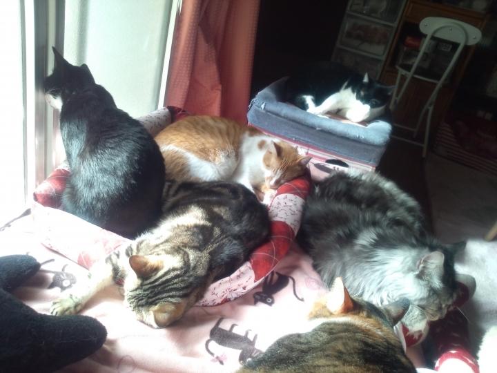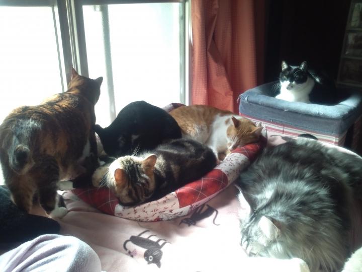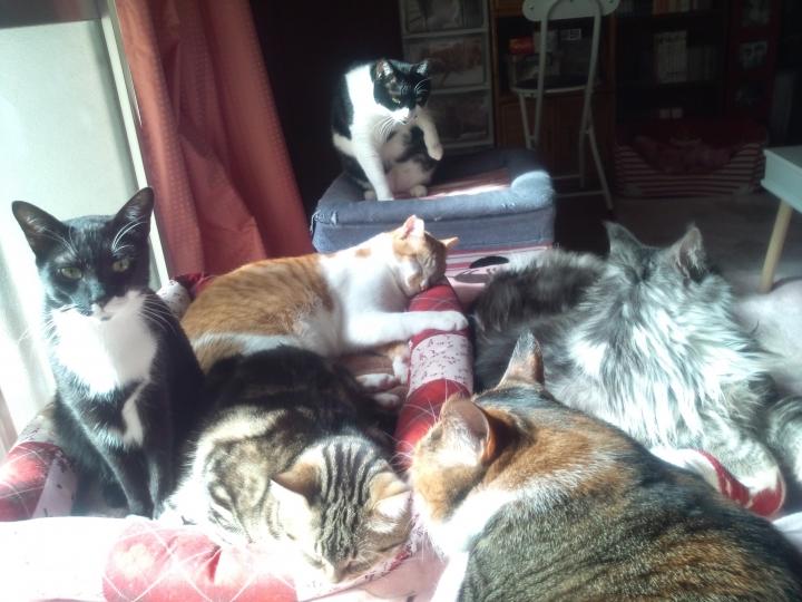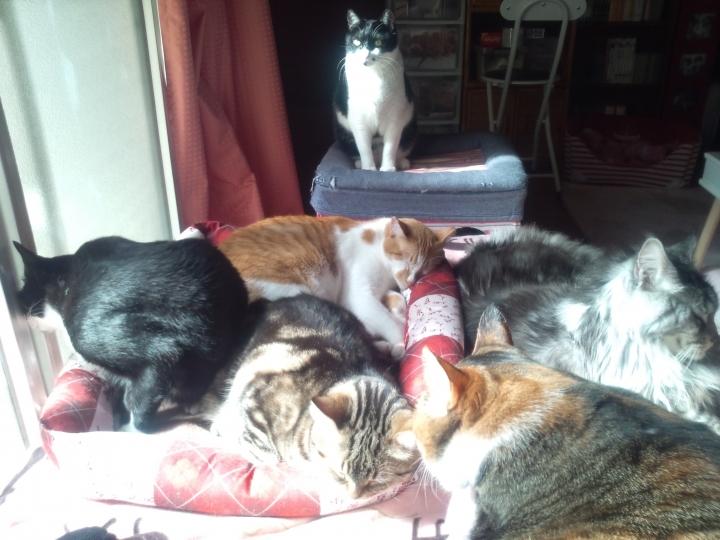 むむ!? 今朝はめずらしく6ニャン全員が集まっている!!