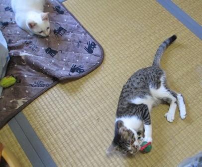 少しずつ元気になりしろちびと一緒に遊ぶようになりました。