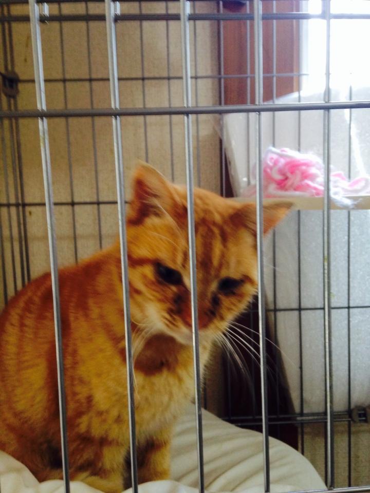 ゴールデンウィーク前、突然現れた茶トラくん。道に向かってニャーニャー鳴いてます。初対面でめちゃくちゃ触れます。でも、ガリガリ…3回目に出会った時に保護。首輪の後がある。飼い猫か?捨て猫か?
