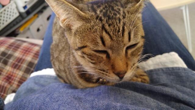 私の膝でまったりのりん。