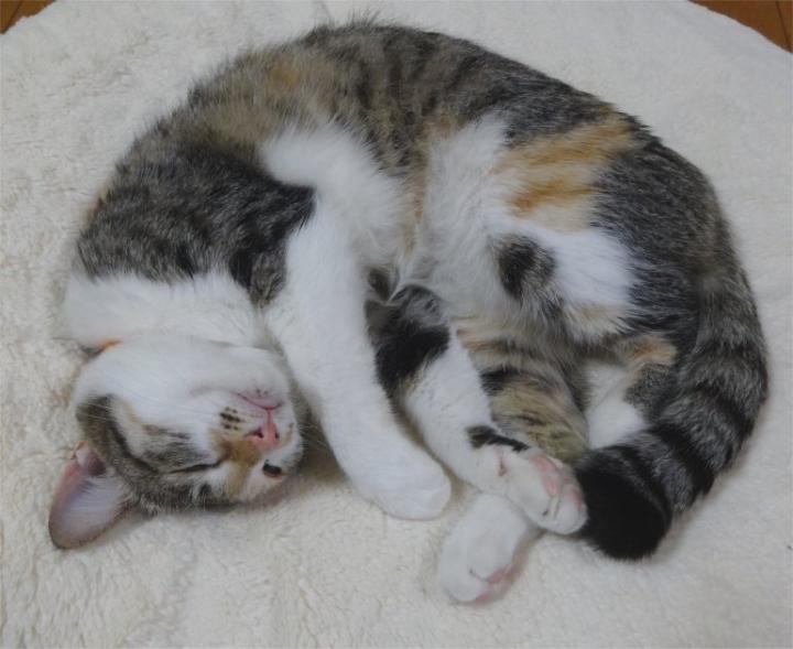 とは言っても、もともと偏食で、気に入った餌でもだらだらと何時間もかけて食べる子達でした。しかし、1月末の避妊手術から1ヶ月くらいして、例に漏れず2匹とも食欲が爆発しました。あまり好みではなかった餌もあっという間に食べきって「なんでもいいから早くもっと食べさせろ」というような具合。体重が急増を始めたので、2匹分の給餌量のコントロールを始めましたが、黒の方が食欲旺盛で体も大きかったので、三毛の分まで食べてしまって太るんだろうなと思っていました。しかし、避妊手術後はむしろ三毛の方が食欲旺盛になり、今では2匹ともだいたい3.5kgです。このくらいを維持していけたらなと思っています。