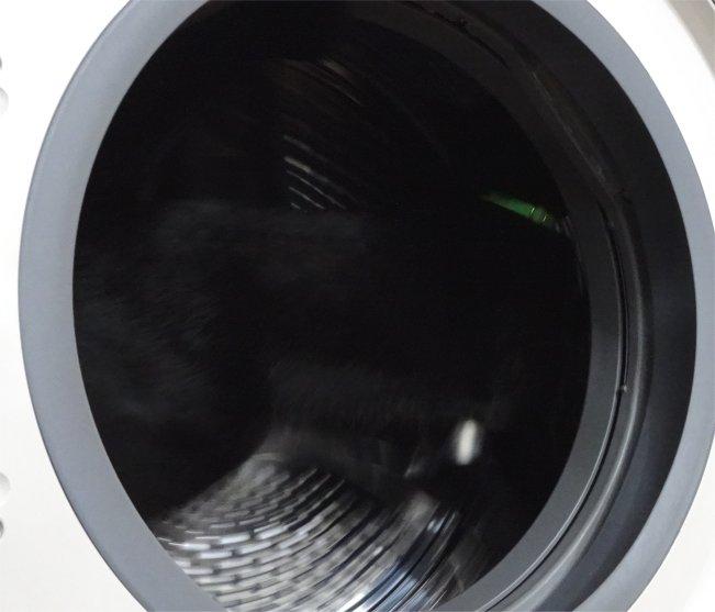 ドラム式洗濯機の中を疾走中。黒は勝手に覚えました。先代もよくぶん回していました。三毛は回せません。