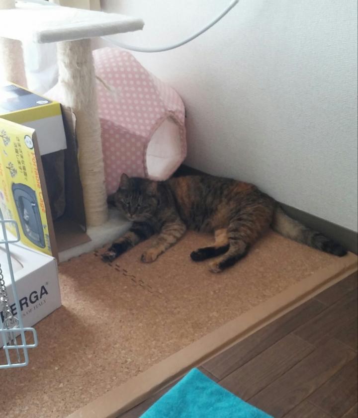 いつもはこんな周りを囲まれていない床に横になることはほとんどないのですが、疲れたのでしょうね。