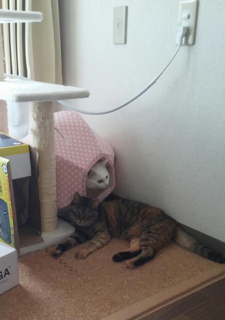 私が留守の間、高い所から落ちて怪我をしたら大変と思いケージに入ってもらっているのですが、ケージの段差も器用に足をかけて昇り降りしています。本当に猫って賢いなぁと関心します。