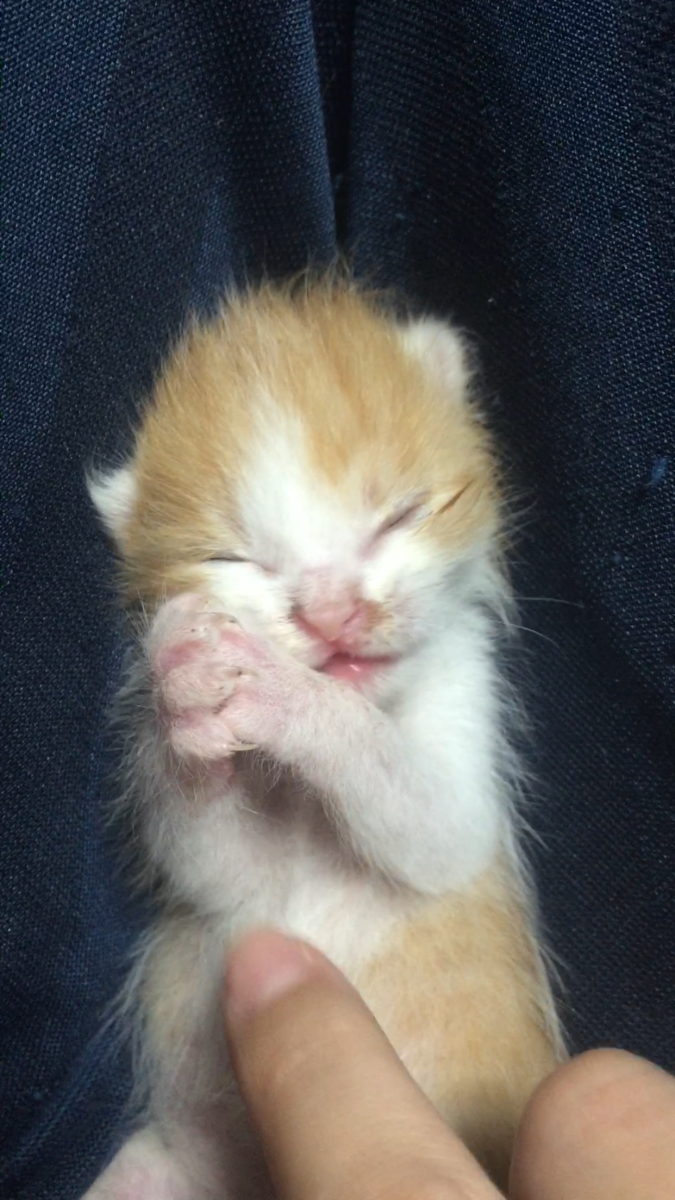 お腹いっぱいになり満足になるとコロコロ喉を鳴らしながら私の手のひらにコロンと横になってきます(^-^)