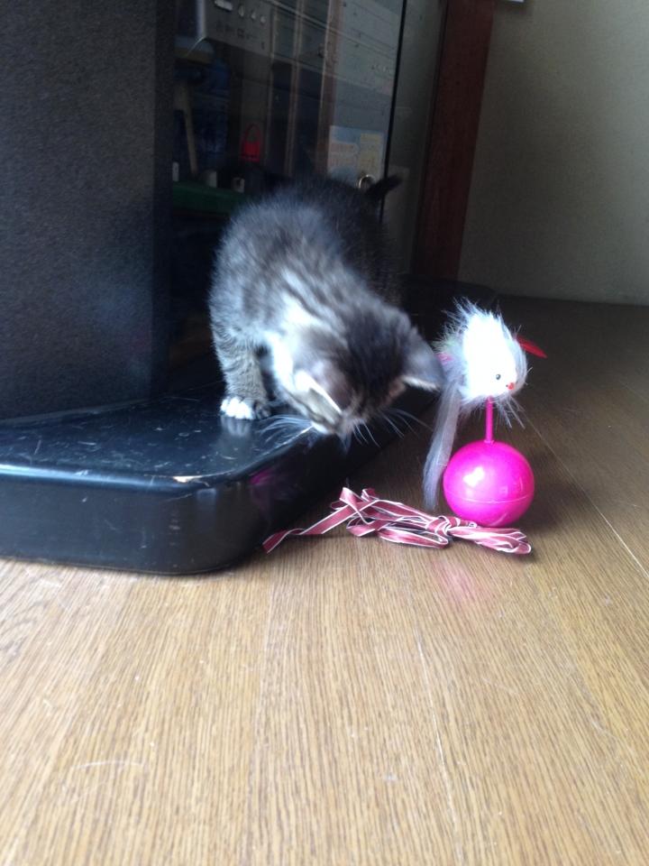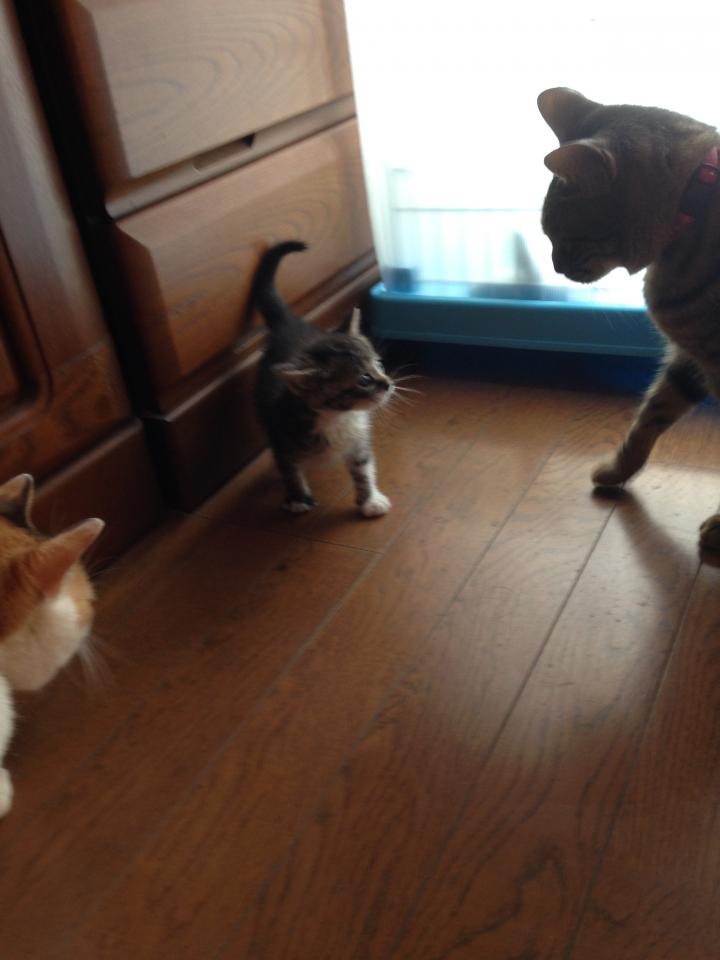 検便もクリアし、3日からお部屋デビューし、我が家の猫達と少しずつ遊ぶ時間を増やしてます。