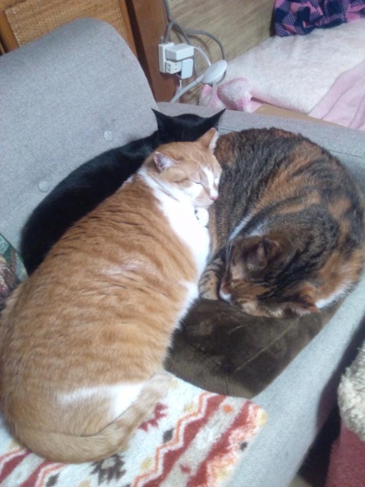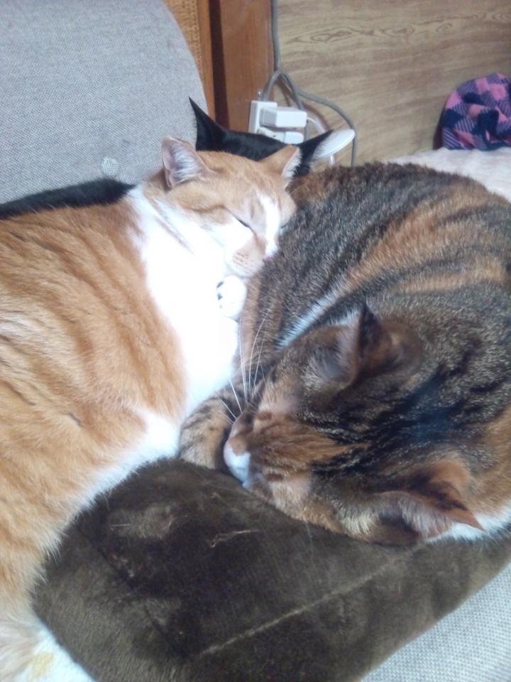 なんと‥ももとシナモンがピットリくっついて寝ている!!