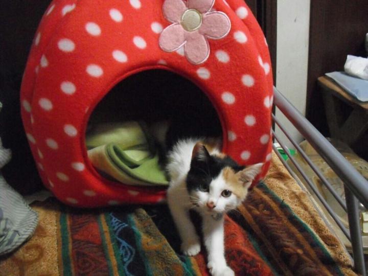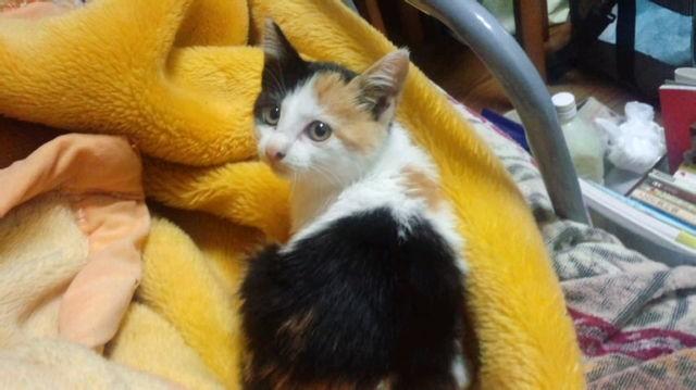 病院に行ったところ乳離れしてすぐに捨てられたらしく生後一月も立ってなかったみたいです。