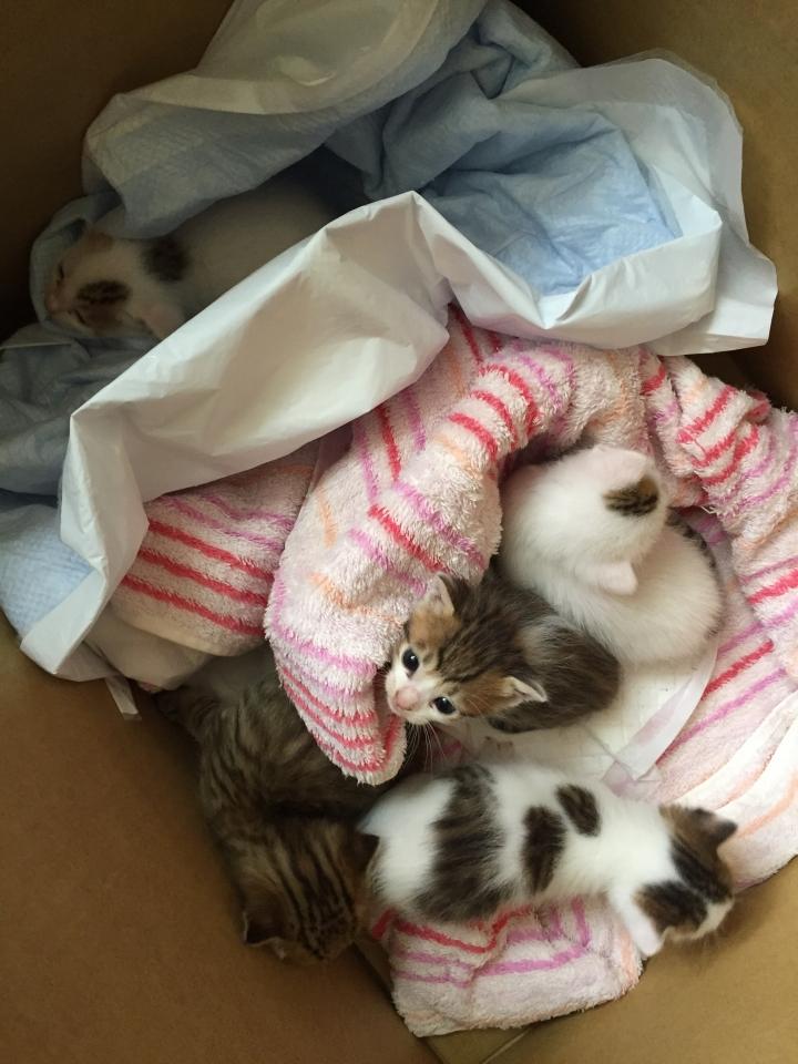 でも悩む暇もなく、カラスに狙われていたために急遽、子猫5匹を保護しました。