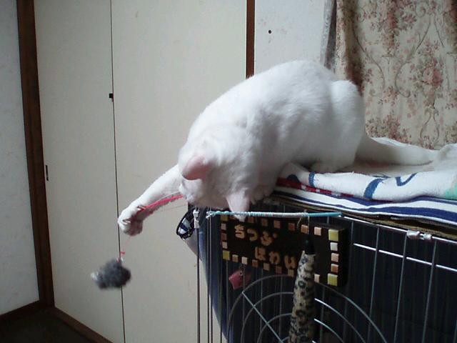 猫じゃらしをゲンさんはゲージの隅に挟んで僕をおちょくってるんだ。
