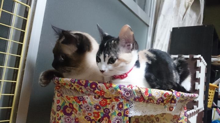 結局小春さんに取られた大福さんはもう少し茶とらちゃんに近づいてみた様です(笑)