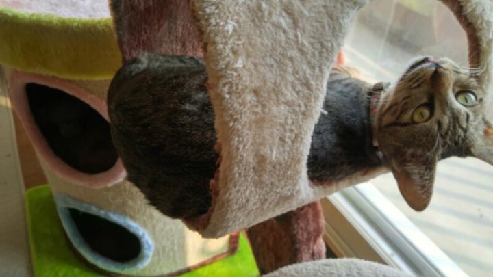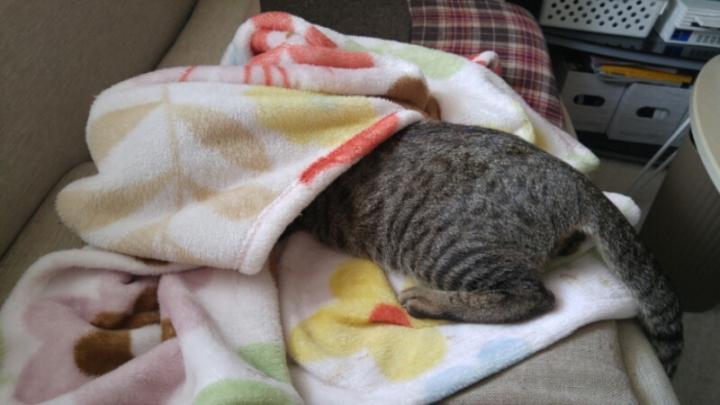 お父さんから、隠れて寝てます。