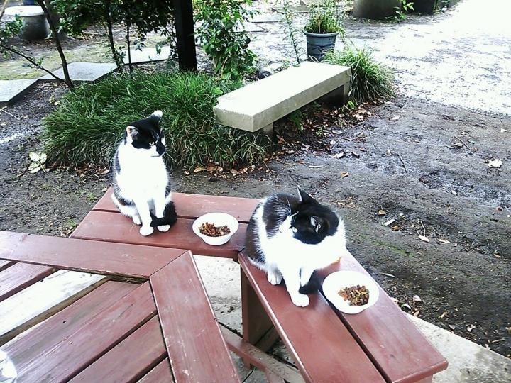 じろちゃんと仲良しだったはなちゃんは避妊手術をしてあるので安泰で看板猫です。じろちゃんは前の方にいる猫ちゃんです♪