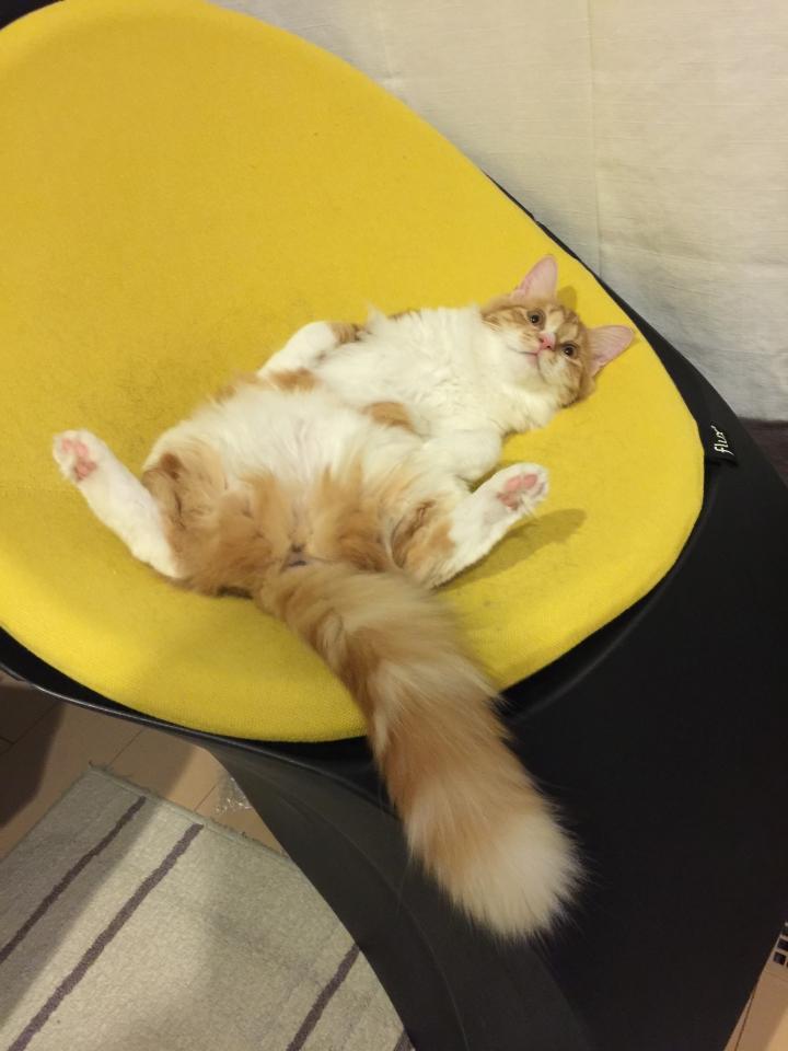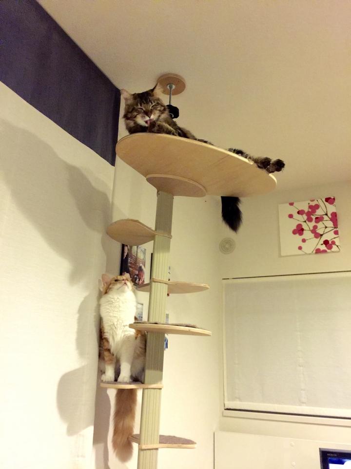 最近はちゃんと自己主張できる様になり、リビから奪いに行ってまで上がることはありませんが、空いている時に登った時にはしっかりとリビから死守できる様になりました。